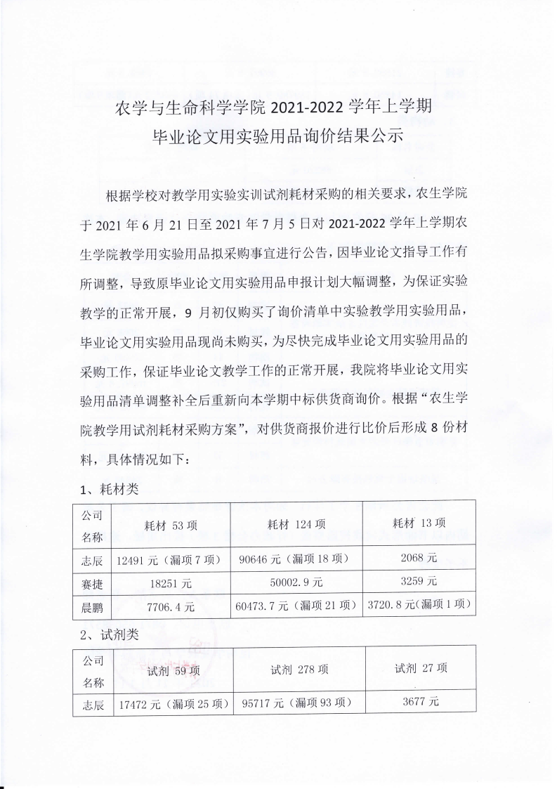 美加墨世界杯官方网站2021-2022学年上学期 毕业论文用实验用品询价结果公示