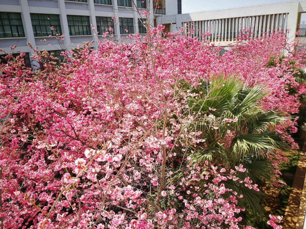 美加墨世界杯官方网站分工会群里,老师们争先恐后的晒着校园美景,有开着正盛的、灿烂的樱花,垂丝海棠...,有校园的教学楼,有校园早晨冉冉升起的骄阳...,一张张照片,从不同视角,不同视距,不同手法把校园美景展示出来,群里赞声不绝,分外热闹。