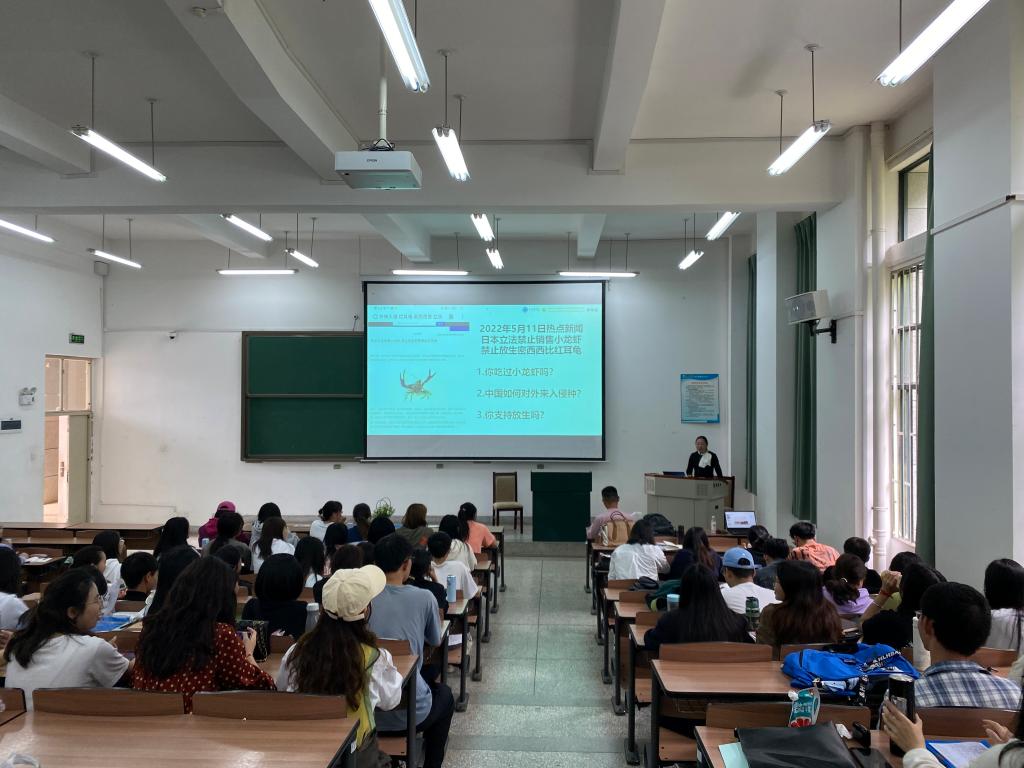 李维薇老师以《生物入侵及其治理》为题,介绍外来入侵种克式原螯虾(俗称小龙虾)、海星、中华绒螯蟹、非洲大蜗牛、红火蚁、草地贪夜蛾等,外来入侵种的区域性差异、外来入侵种防控工作等方面的内容,加深同学们对外来入侵种的进一步认识,同时也为同学们今后的考研、工作方向提供一定的指导。