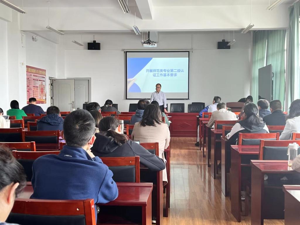 解永刚处长以《开展师范类专业第二级认证工作基本要求》为题,给老师们讲授了师范认证的指导思想、认证理念、培养目标、毕业要求、课程体系,及课程教学大纲的编写要求和方法等内容;杨黎江副主任以《人才培养目标达成度评价》为题,给老师们介绍了人才培养质量达成度评价的三个层次、毕业要求达成度评价、师德规范等内容。讲座加深了老师们对师范认证的进一步认识,同时也为美加墨世界杯官方网站生物科学师范专业认证提供指导。